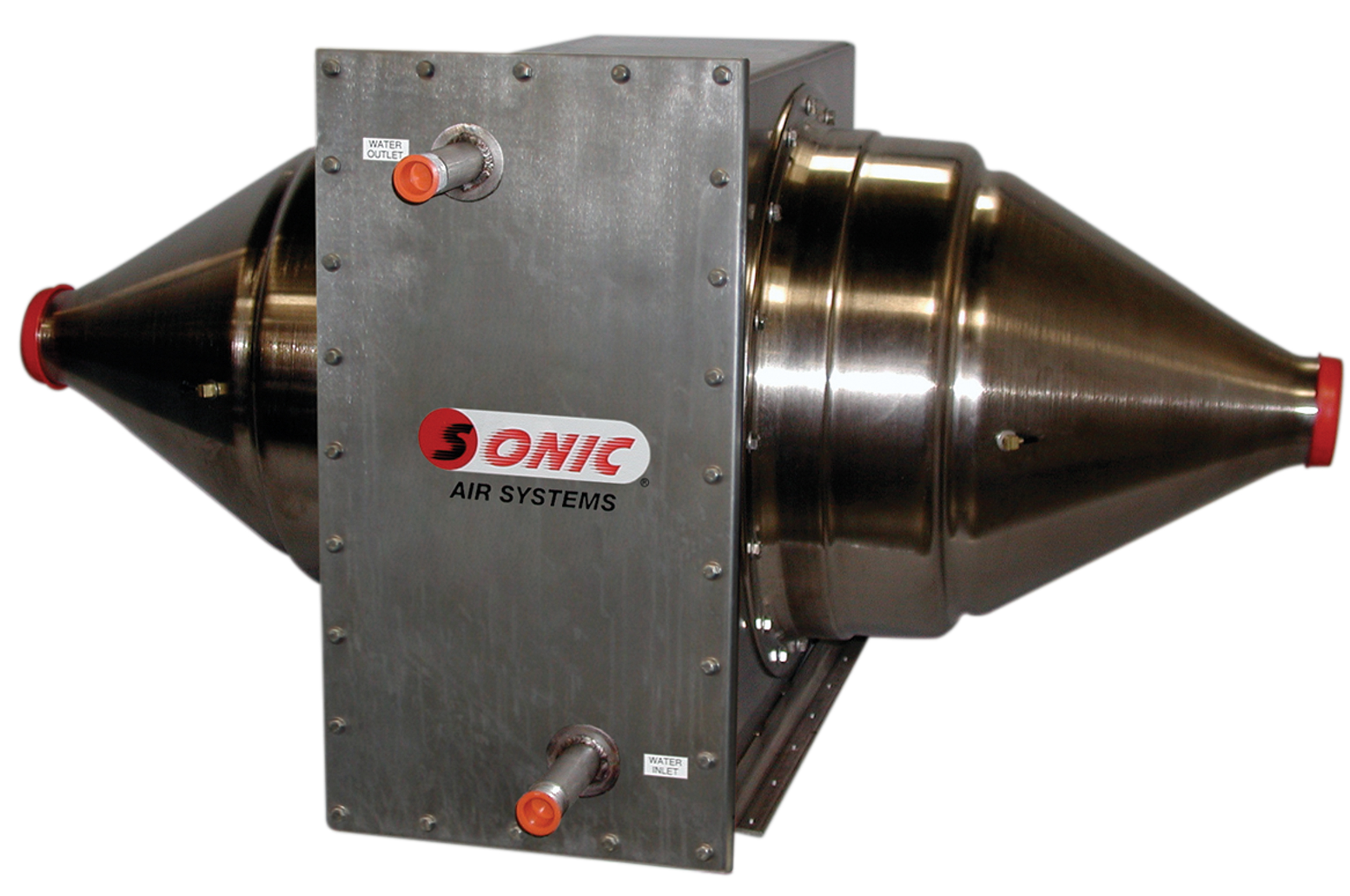 Sonic ha desarrollado una forma revolucionaria de enfriar y secar (o simplemente enfriar) el producto del transportador antes de envasarlo. Esta característica es particularmente importante en las industrias de productos frescos cortados, panadería y confitería donde “el calor es el enemigo” y el procesamiento debe realizarse con aire frío en lugar de aire caliente. Sonic Sistemas de Cuchillas de Aire Sonic ha sido el líder en el secado a “alta temperatura” de los productos de los clientes en transportadores después de lavarlos, enjuagarlos o enfriarlos con agua.